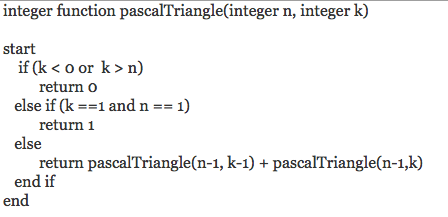 So how can these recurrent relations be computed with a method that can be simply expressed, easily applied and promote re-use of operations. Recursion is one powerful mechanism satisfies these important criteria. It is a method uses again its own definition. All the recursive methods below use again their definition of the function within their definition. All of them have a base that starts the sequence.